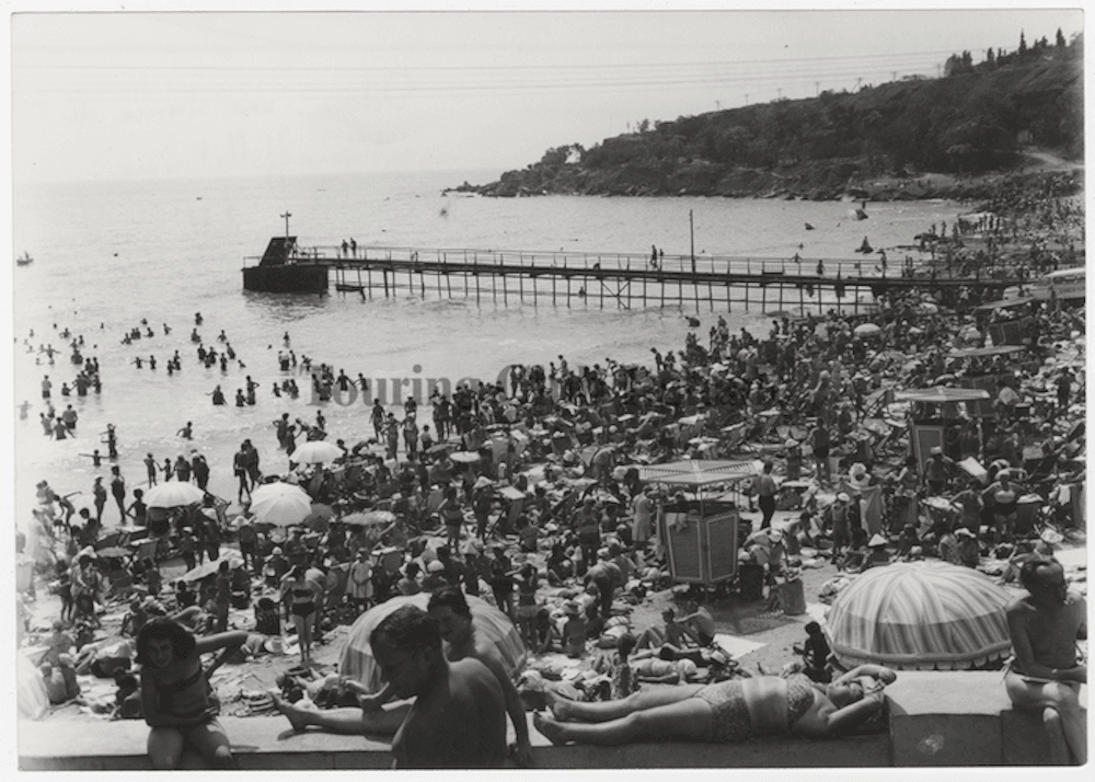 “Taccia chi si lagna della folla che gremisce certe spiagge occidentali, anche di casa nostra. Qui l’acqua e la brevissima fetta di sabbia ribollono di corpi. [..] Chi vuole spogliarsi per fare il bagno entra in curiose cabine collettive, a rotazione, che sembrano grandi botti, da cui sporgono testa e gambe di chi sta dentro. [..] Ma c’è il problema delle navi che scaricano residui bituminosi. [..] Non voglio rischiare la patacca di bitume e rinuncio alla nuotata. Torniamo in città”.