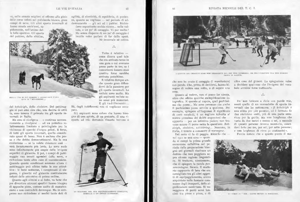 dalla Rivista Mensile, gennaio 1922: “In pochi anni gli sports invernali han fatto molta strada anche in Italia”. Inizia così l’articolo “Principii e principianti” a firma di Decio Buffoni sulla Rivista mensile del Touring del gennaio 1922. Buffoni scrive che specialmente gli sci hanno avuto fortuna. Ma non è il progresso o l’imitazione di mode straniere ad aver fatto fiorire anche in Italia lo ski – secondo la grafia norvegese, utilizzata al tempo.