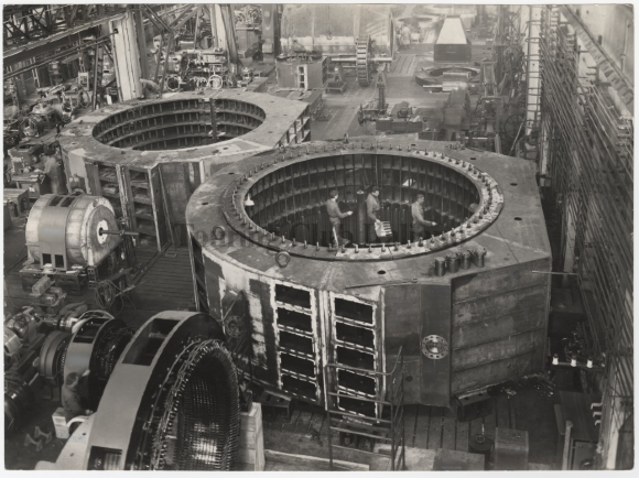 Stabilimento Ercole Marelli & C. a Sesto San Giovanni : lavorazione degli statori di altenatori ad asse orrizzontale